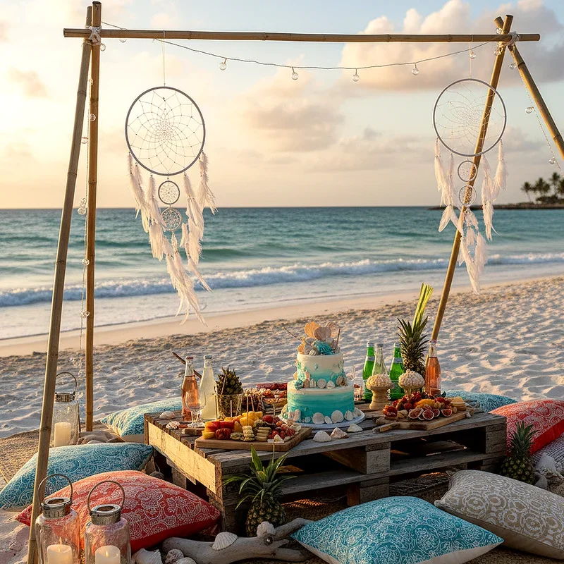 Create an Instagram-worthy picnic setup that makes traditional indoor dining feel absolutely ordinary compared to your seaside spread. Layer colorful blankets and cushions on the sand, anchored with stylish beach umbrellas and decorated with nautical rope and seashell garlands. Pack your feast in vintage wicker baskets filled with finger foods that won't mind a little sea breeze like wraps, fruit skewers, cheese boards, and refreshing salads in mason jars. Don't forget the details that elevate your setup from basic to brilliant like bamboo plates, biodegradable utensils, and cloth napkins held with shell napkin rings. The key to a successful beach picnic lies in preparation; bring wet wipes, extra napkins, and covered containers to keep sand out of your birthday cake while you dine with dolphins playing in the distance.