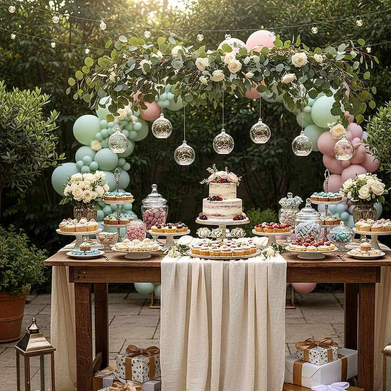 Transform your dessert table into a showstopping centerpiece that doubles as decoration and delicious entertainment for your guests. Create levels using cake stands, boxes covered in decorative paper, and tiered serving platters to add visual interest. Coordinate your sweets with your color scheme by choosing candies, cupcakes, and treats that match your theme. Add decorative elements like a backdrop, bunting, or a balloon arch specifically for this area. Label each dessert with creative signs that match your party style, from elegant calligraphy to fun chalkboard designs. This sweet station becomes a natural gathering spot where guests mingle while admiring and selecting treats, making it both functional and beautifully decorative.