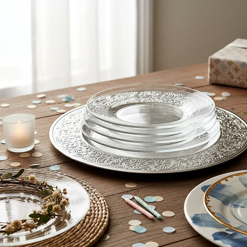 11. Clear Glass Plates with Decorative Chargers