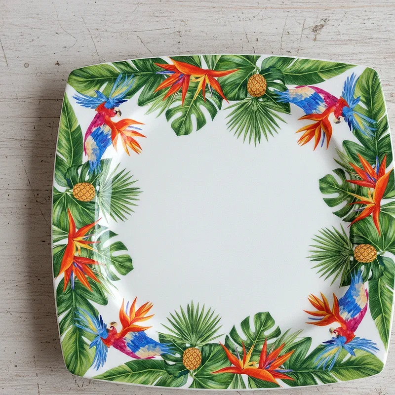 Escape to an island paradise with vibrant tropical-printed plates featuring palm leaves, exotic flowers, and bright birds that instantly transport guests to warmer climates. These lively designs work wonderfully for summer birthdays or anyone who loves beach vibes and vacation feelings year-round. The bold patterns and colors create an instant party atmosphere, making even simple foods feel special and celebration-worthy. You're essentially bringing vacation energy to your dining table, encouraging guests to relax and embrace the festive tropical mood. Pair these plates with fresh fruit displays, colorful cocktails, and maybe some reggae music to complete the island experience that'll have everyone feeling like they're celebrating in paradise.