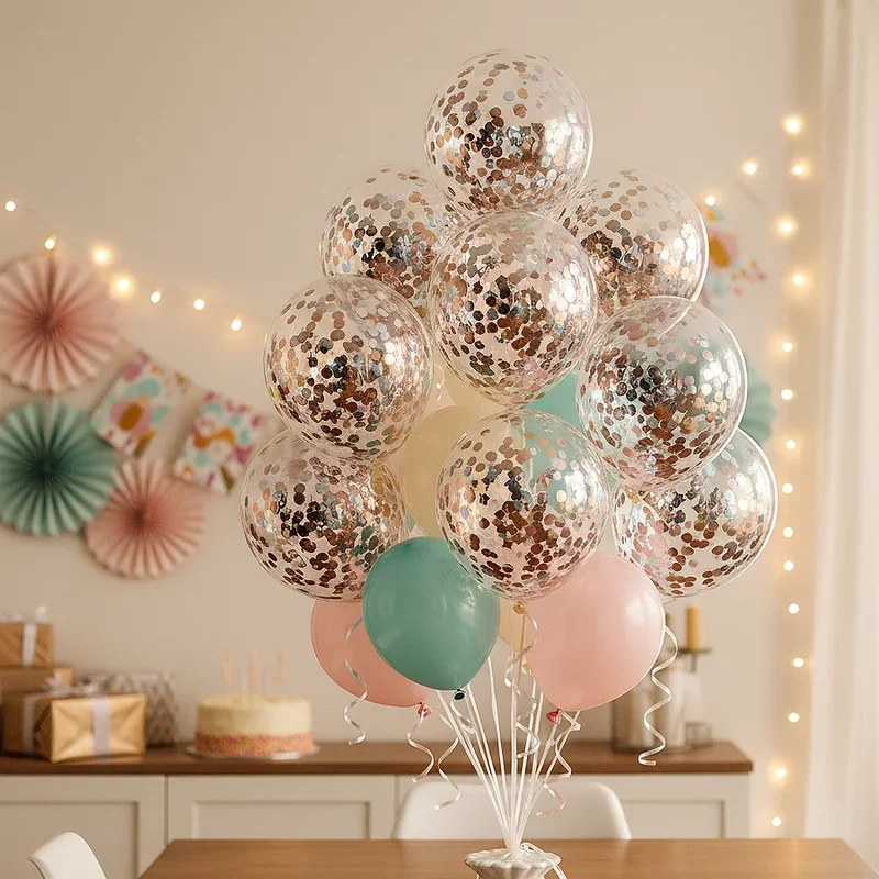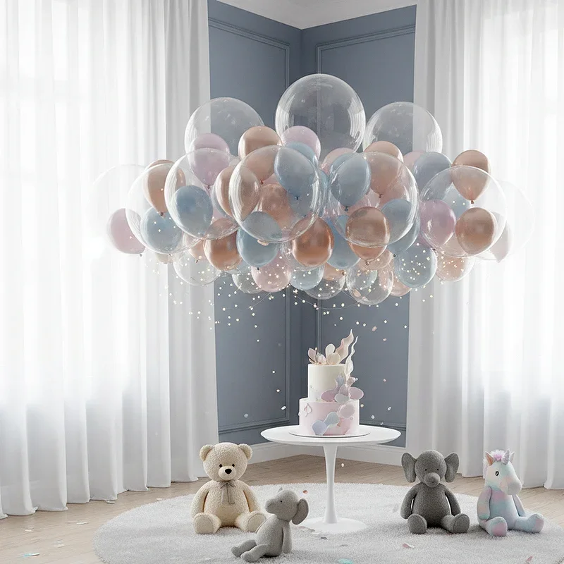Bubble balloons, also known as clear sphere balloons, create an ethereal floating effect that adds sophistication to birthday celebrations. Fill these transparent orbs with smaller balloons, feathers, confetti, or even fresh flowers for unique decorative elements. Their crystal-clear appearance and perfect round shape make them look like magical floating bubbles throughout your party space. Arrange them at varying heights using clear string to maintain the illusion that they're actually floating on their own. These balloons last longer than regular latex balloons, making them perfect for parties that extend into the evening. Add LED lights inside for a glowing effect that transforms the ambiance as natural light fades. Their modern, elegant appearance elevates any birthday party from casual to Instagram-worthy instantly.