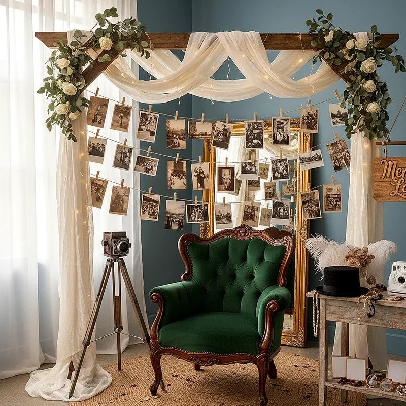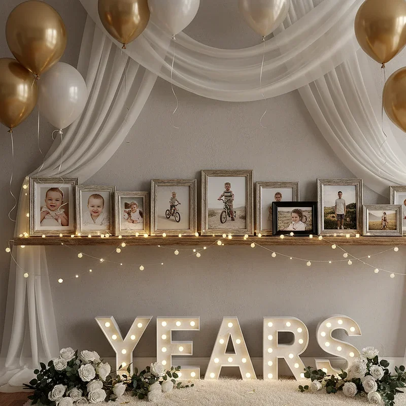 Celebrate the birthday person's journey by creating a photo timeline that showcases memorable moments from each year of their life. Hang photos chronologically along a wall using decorative clips and string, creating a visual story that guests can explore. Include baby photos, school pictures, family vacations, and milestone achievements to spark conversations and nostalgia. Add small caption cards with dates or funny memories to make the display more interactive and engaging. You can arrange photos in a straight line, zigzag pattern, or creative shapes like hearts or numbers. This personal touch shows thoughtfulness and effort while doubling as both decoration and entertainment. Guests will love walking down memory lane and sharing their own stories about the featured moments.
