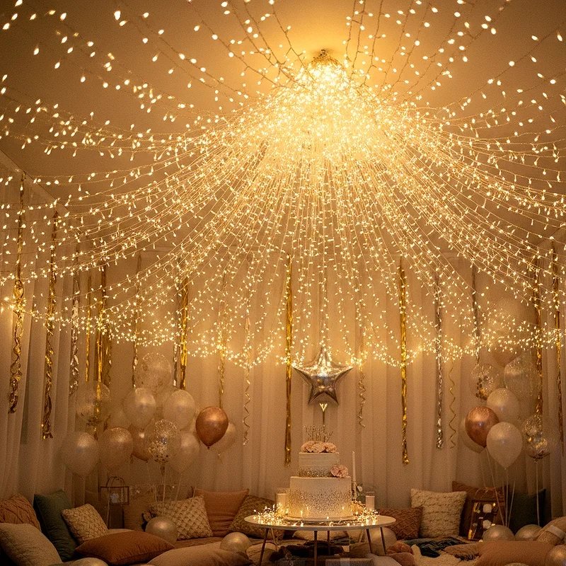 Nothing creates ambiance quite like a canopy of twinkling fairy lights draped across the room. String battery-operated LED lights from corner to corner, creating a starry night effect overhead. You can weave them through sheer fabric for a dreamy, ethereal look that transforms any space into a magical venue. Choose warm white lights for a cozy atmosphere or multicolored options for a more playful vibe. Layer different lengths of light strings at varying heights to add dimension to your design. Combine fairy lights with tulle or organza fabric to soften the overall appearance and create a romantic setting. This versatile decoration works perfectly for both daytime and evening celebrations, adding that special sparkle everyone associates with birthdays.