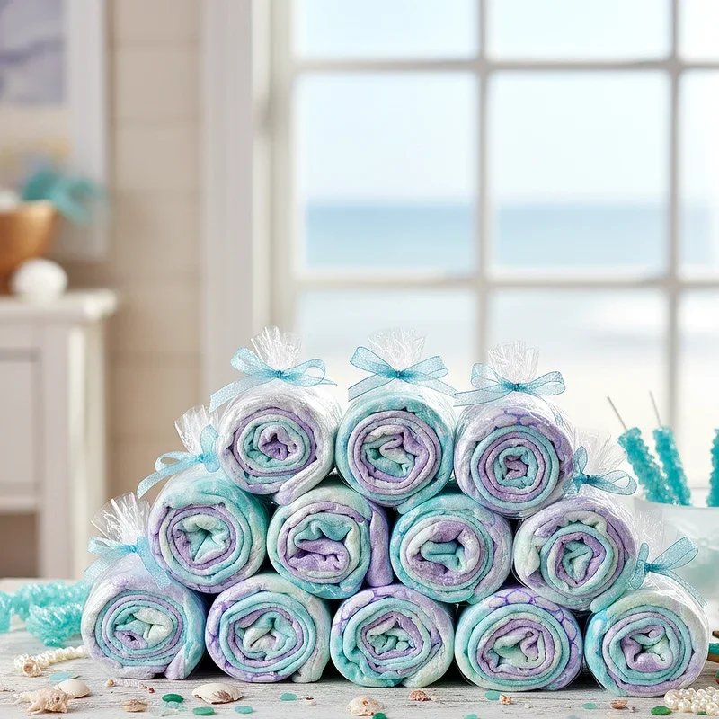 Provide cozy mermaid tail blankets as memorable party favors that extend the magic beyond the celebration into everyday life. Choose blankets in various colors allowing each guest to select their preferred mermaid tail shade. These practical gifts serve dual purposes as dress-up items during the party and comfort items at home. Personalize each blanket with iron-on initials or small patches making them extra special keepsakes from the birthday celebration. Display the blankets in a decorated treasure chest or ocean-themed basket for dramatic presentation when distributing favors. These thoughtful gifts ensure every guest leaves feeling like a true mermaid, carrying home a piece of the underwater adventure that provides warmth and memories long after the party ends.