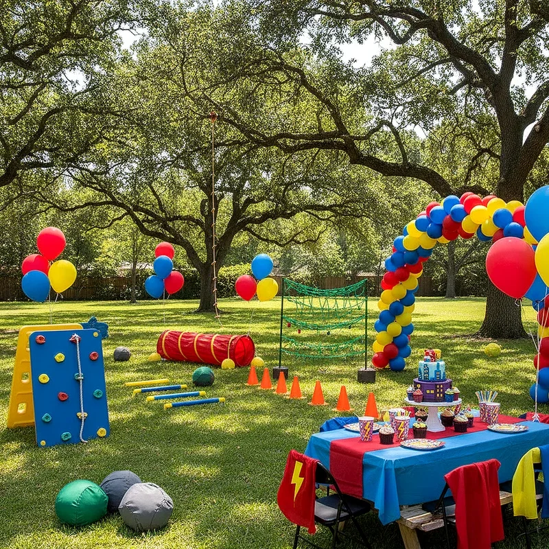 Transform your backyard into a superhero training ground where young heroes test their powers through exciting challenges and obstacle courses. Create stations that test different superpowers like laser maze agility, strength challenges, and target practice with foam darts or balls. Provide capes and masks for each guest to design their own superhero identity before beginning their training missions. Set up an obstacle course using household items like hula hoops, pool noodles, and jump ropes for heroes to navigate. The birthday child leads their superhero squad through missions to save the day and defeat imaginary villains together. This active theme encourages imaginative play while keeping kids physically engaged throughout the entire party celebration time. Conclude with a graduation ceremony where each hero receives a certificate of completion and special superhero party favors.