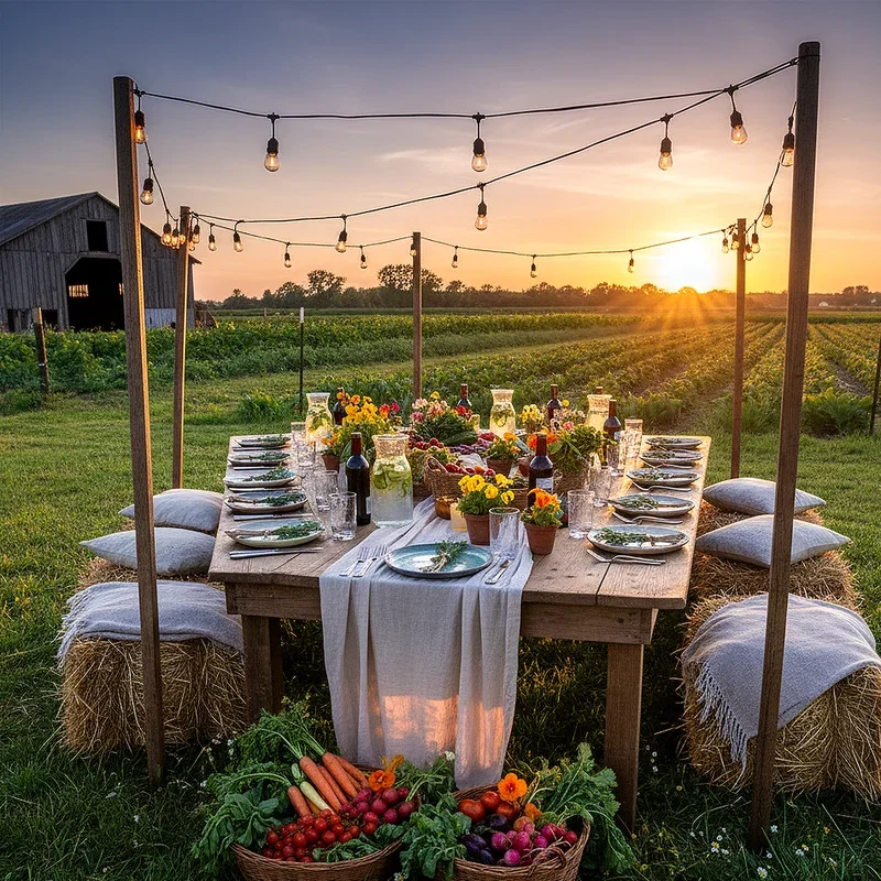 Celebrate with a sophisticated outdoor dinner party that showcases fresh, local ingredients in a beautiful backyard setting under string lights. Set up a long table decorated with wildflowers, burlap runners, and mason jar centerpieces for that rustic farmhouse aesthetic appeal. Create a seasonal menu featuring grilled vegetables, artisan breads, and locally sourced proteins that highlight the best of your region. Involve guests in the experience by having them help harvest herbs from your garden or participate in meal preparation. This intimate celebration style encourages conversation and connection while enjoying delicious food in a relaxed outdoor atmosphere. The farm to table concept appeals to food lovers who appreciate quality ingredients and sustainable dining practices. Add acoustic music and candlelight as the sun sets to create an unforgettable ambiance for the birthday celebration.
