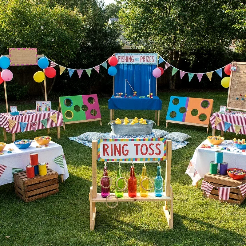 Bring the excitement of a carnival to your backyard with homemade game booths and prizes that rival any county fair. Set up classic games like ring toss, duck pond, bean bag throw, and a basketball shootout using household items creatively. Create a ticket system where guests earn points at each station to redeem for prizes from your prize table display. Decorate with colorful streamers, balloons, and signs that give each game booth its own personality and carnival appeal. Serve traditional carnival foods like cotton candy, popcorn, corn dogs, and snow cones to complete the authentic fair experience. This interactive party format keeps guests entertained as they move between stations at their own pace throughout the celebration. The competitive element adds excitement while the variety ensures there's something fun for every skill level and age.