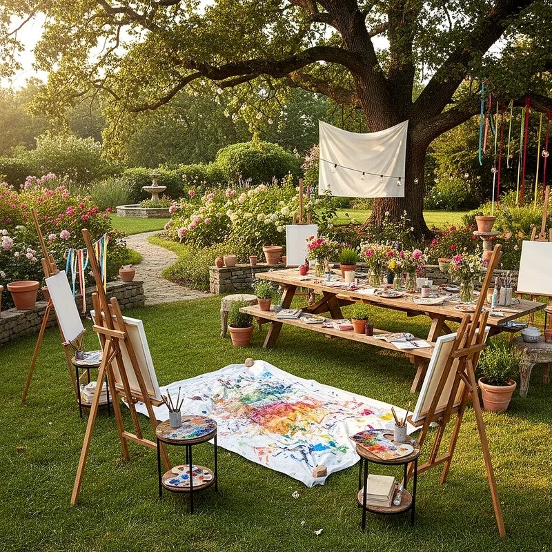 Combine creativity with nature by hosting an outdoor art party where guests create masterpieces inspired by your garden's natural beauty. Set up easels, canvases, and art supplies at different stations for painting, pottery, or craft projects guests can complete. Hire a local artist to lead a painting class or provide instruction for specific techniques that match the birthday person's interests. Display finished artwork on a clothesline gallery or fence for an impromptu art show during the celebration festivities. Include activities like rock painting, flower pressing, or nature collages that incorporate elements from the outdoor environment directly. This cultured celebration appeals to creative souls who appreciate combining artistic expression with the inspiration of outdoor surroundings. Send guests home with their creations as meaningful party favors that remind them of the special day.