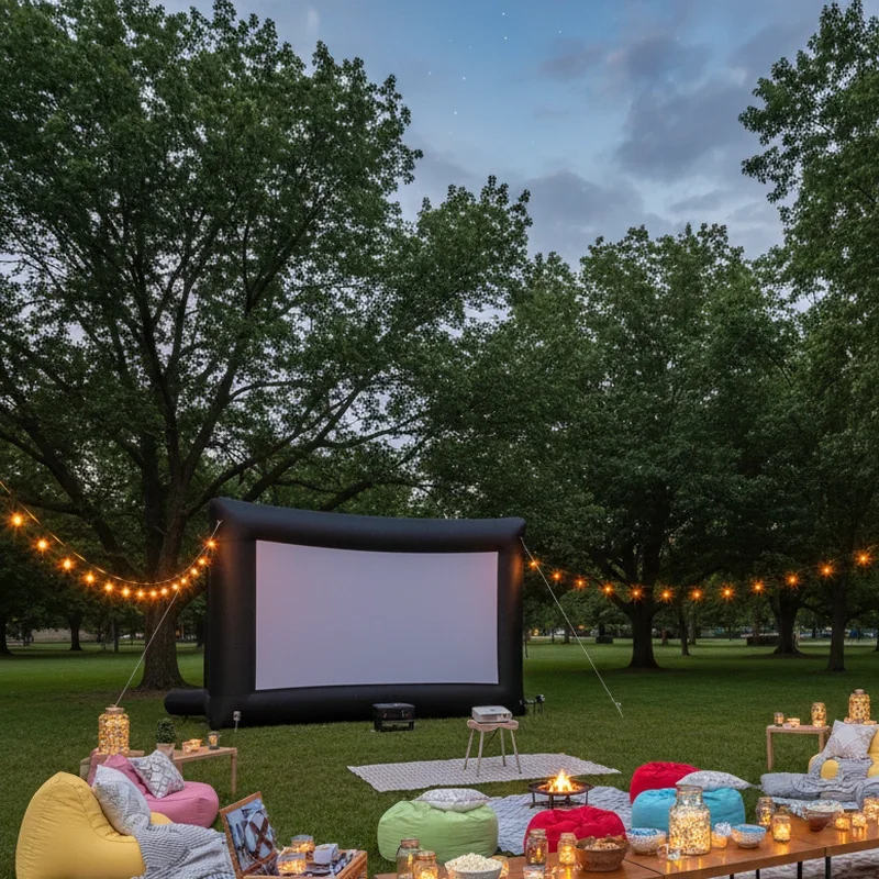 As the sun sets, transform your park space into an enchanting outdoor cinema where birthday magic meets movie magic! Bring a portable projector and screen, or hang a white sheet between trees, and arrange cozy seating with blankets, pillows, and lawn chairs. Create a concession stand with popcorn, candy, and drinks served in movie theater-style containers for that authentic cinema experience. Choose age-appropriate films that everyone will enjoy, perhaps letting the birthday child pick their favorite. Add string lights around the viewing area for ambiance and safety as darkness falls. This unique celebration combines the excitement of going to the movies with the comfort of being outdoors, creating an unforgettable experience that feels both special and intimate.