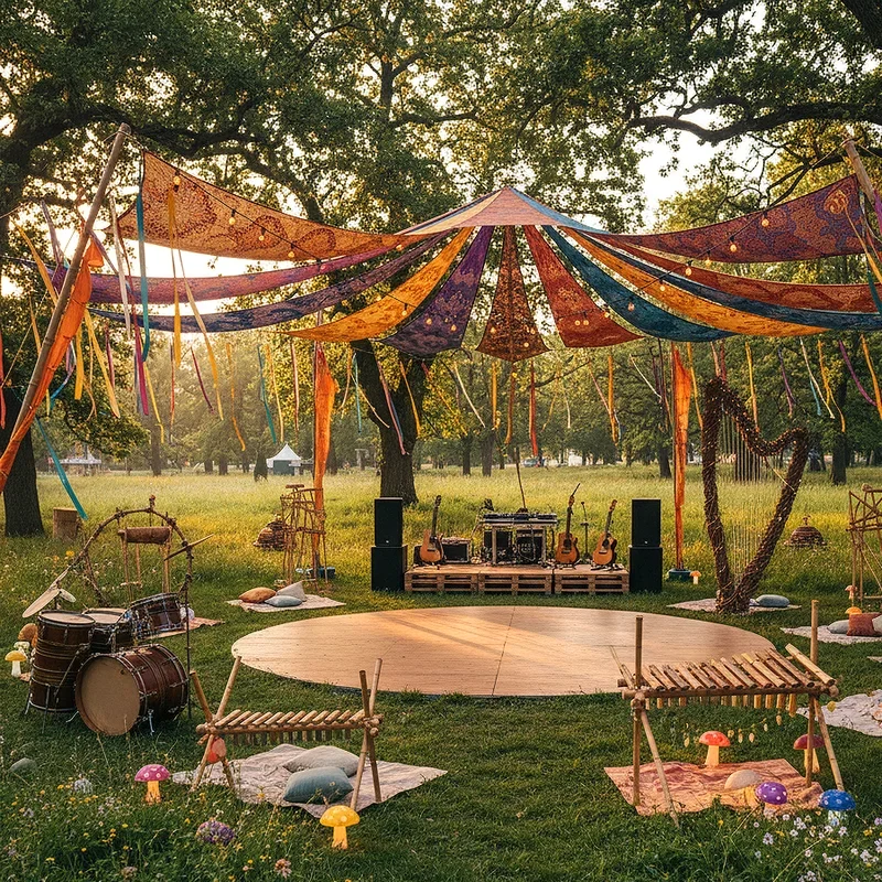Create your own mini music festival atmosphere with different performance areas, instruments, and dance zones throughout the park! Set up a main stage area with a portable karaoke machine or microphone for performances, and create rhythm stations with homemade shakers, drums, and other percussion instruments. Organize dance competitions, freeze dance games, and musical chairs using portable speakers positioned around your party space. Encourage kids to form bands and perform their favorite songs, or teach everyone a simple line dance they can do together. Provide colorful streamers, ribbons, and glow sticks for added visual effects during dance sessions. This high-energy theme gets everyone moving while celebrating music and self-expression, perfect for kids who love to perform and be in the spotlight.