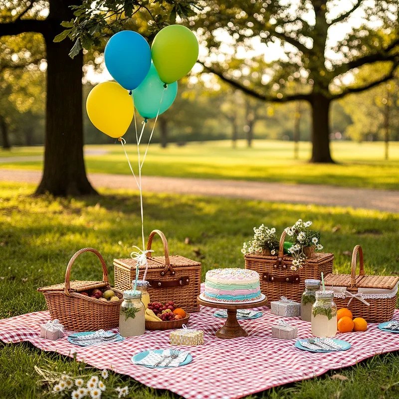 Who doesn't love a good old-fashioned picnic party? Set up colorful blankets across the grass, arrange wicker baskets filled with sandwiches, fresh fruits, and homemade treats, and you've got yourself a timeless celebration. Add some vintage touches like mason jar drinks, checkered tablecloths, and wooden serving boards to create that perfect Instagram-worthy setup. You can organize classic picnic games like sack races, three-legged races, and egg-and-spoon competitions that'll get everyone moving and laughing. The beauty of this theme lies in its simplicity; you're letting the park's natural charm shine while providing comfortable spaces for guests to relax, chat, and enjoy the birthday festivities at their own pace.