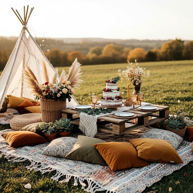 Create an Instagram worthy celebration by layering colorful rugs, macrame decorations, and plenty of plush pillows on the grass for ultimate comfort. Arrange low wooden tables or use serving trays as makeshift surfaces for your feast of artisanal cheeses, fresh fruits, and homemade dips. Incorporate natural elements like pampas grass, dried flowers, and woven baskets to enhance the bohemian aesthetic that's both trendy and timeless. Set up a DIY flower crown station where guests can craft their own headpieces using fresh blooms and greenery from local markets. The relaxed vibe encourages conversation and connection, making everyone feel like they're part of an exclusive outdoor gathering that celebrates both nature and individuality.
