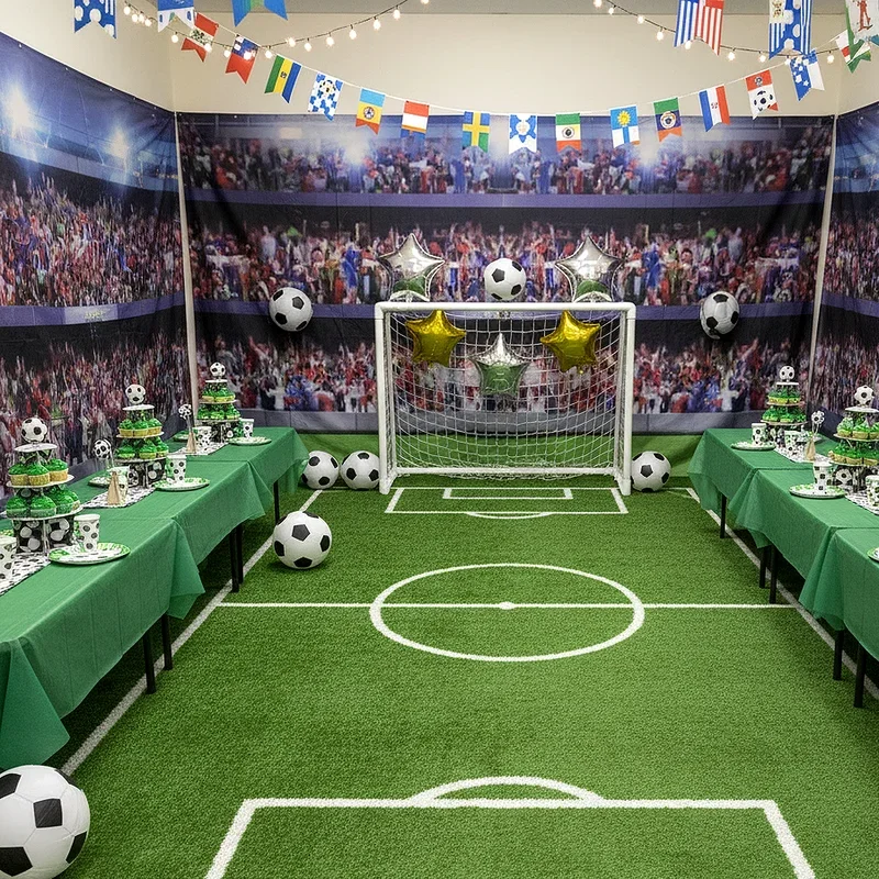Turn your party venue into a mini stadium that would make any soccer fan's heart race! Hang green streamers to mimic grass, use white tape to create field lines on your floor, and set up corner flags using dowels and fabric triangles. Black and white checkered patterns everywhere will reinforce that classic soccer ball aesthetic you're going for. String up pennant banners in team colors and display posters of famous soccer players around the space. Consider renting or making cardboard cutout goals for each end of your party area. The transformation doesn't need to break the bank either; dollar stores often carry sports-themed decorations that work perfectly. Your guests will feel like they've stepped into their favorite stadium!