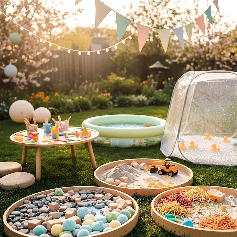 Create a wonderland of textures, colors, and safe exploration zones that'll keep tiny hands busy and developing minds engaged. Set up stations with kinetic sand, water beads, playdough, and finger painting areas where mess is actually encouraged. Include a texture wall with different fabrics, bubble wrap, and corrugated cardboard for tactile exploration. Add a musical sensory corner with shakers, drums, and xylophones made from household items. Provide smocks or old t-shirts for all guests to protect their party clothes. The genius of sensory play parties is that they naturally accommodate different developmental stages and interests. Every toddler finds something that captures their attention, whether they're squishing playdough or splashing in water bins.