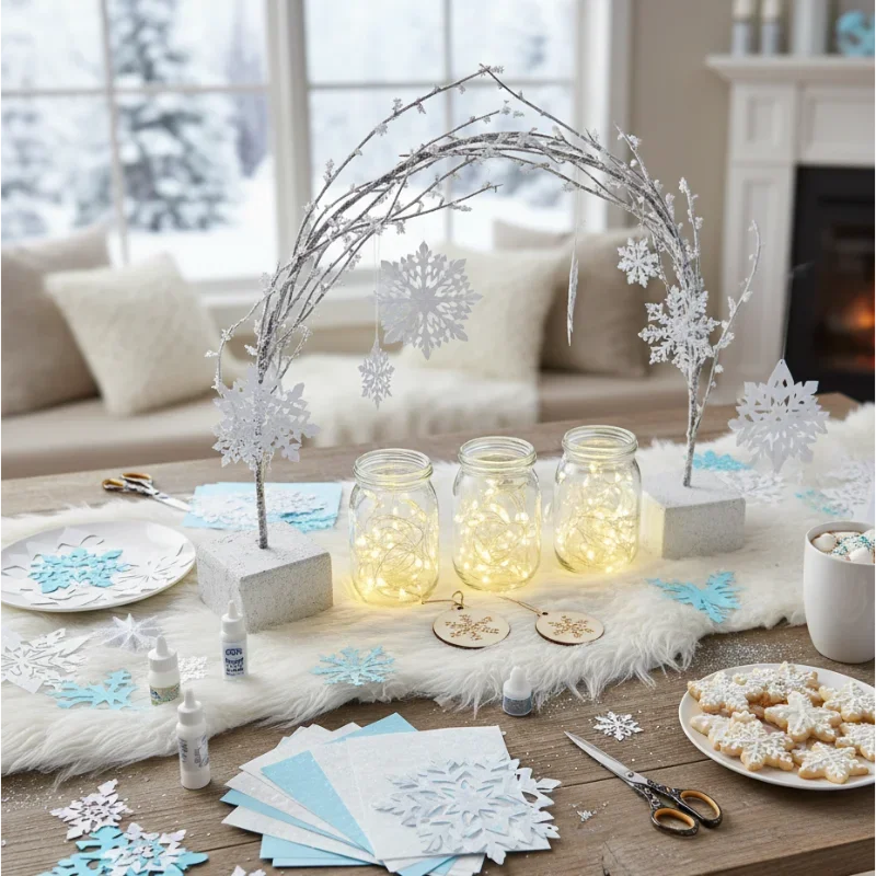 Turn your dining room into an art studio where every child becomes a snowflake designer, celebrating the birthday child while exploring their creativity. Provide various materials like paper, coffee filters, doilies, glitter, sequins, and metallic markers for creating unique snowflakes. Teach different folding and cutting techniques, showing how no two snowflakes are alike, just like each party guest is special. Set up stations for different snowflake crafts: paper cutting, painting on windows with removable paint, and creating 3D snowflakes with popsicle sticks and glue. Display finished creations on windows and walls, transforming your space into a gallery of winter art. This activity combines creativity with fine motor skill development, and each child takes home their handmade decorations as party favors, making it both entertaining and practical.